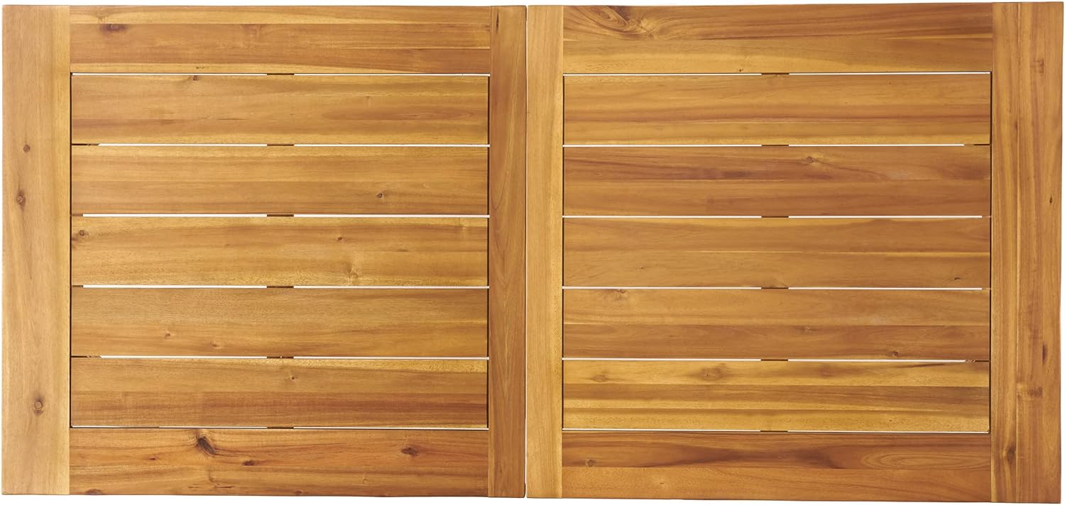 With sleek, finished lines, this dining table is ideal for any spot in your home. Made with acacia wood, this table is both sturdy and pleasant to look at. The contrast of the rustic metal finish of the legs helps enhance the overall appeal of the table. Enjoy it anywhere you need a dining table. It's a great value for the size and provides a cost-effective rustic look.